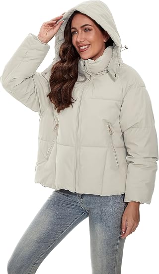Cropped Puffer Jacket for Women Winter Zip Up Quilted Jacket Outerwear Coat with Pockets