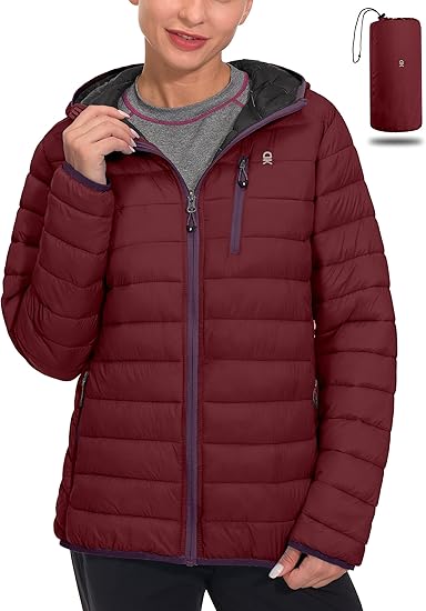 Women's Packable Lightweight Puffer Jacket Hooded Windproof Winter Coat with Recycled Insulation