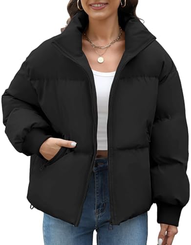 Puffer Jacket Womens 2024 Winter Coats Cropped Long Sleeve Zip Puffy Quilted Jackets Stand Collar Baggy Short Coat