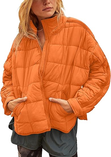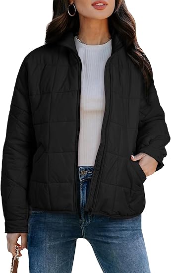Women's Quilted Puffer Jacket Zip Up Oversized Lightweight Padded Down Coat Outerwear
