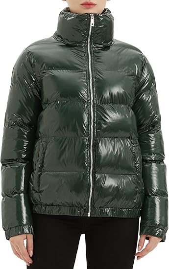 Women's Casual Quilted Shiny Padded Puffer Jacket Winter Warm Zip Short Bubble Coat