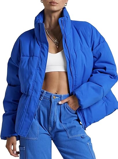 Womens Cropped Puffer Jacket Full Zip Quilted Jackets Warm Winter Coat Outerwear with Pockets